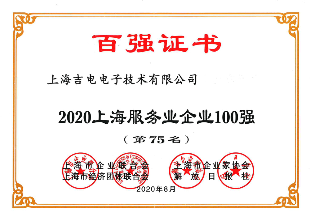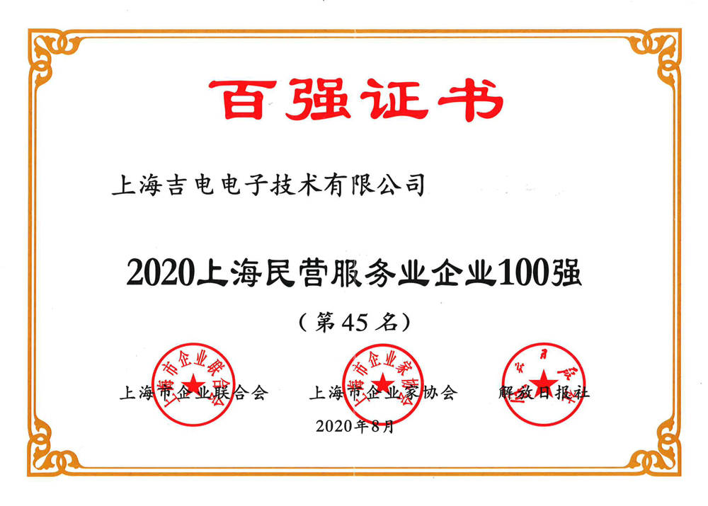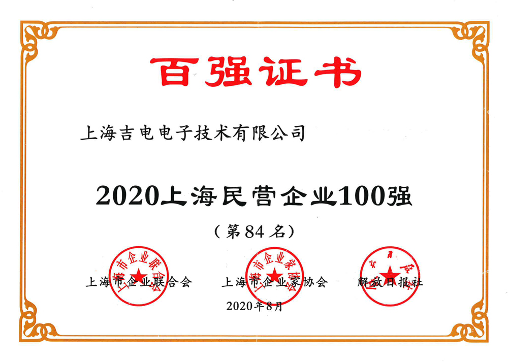 8月18日,由上海市企業(yè)聯(lián)合會、上海市企業(yè)家協(xié)會、上海市經(jīng)濟(jì)團(tuán)體聯(lián)合會、解放日報社等聯(lián)合主辦的“2020上海百強企業(yè)發(fā)布會”在滬召開。上海吉電電子技術(shù)有限公司再次榮登上海民營百強企業(yè)榜,并位居第84位。
