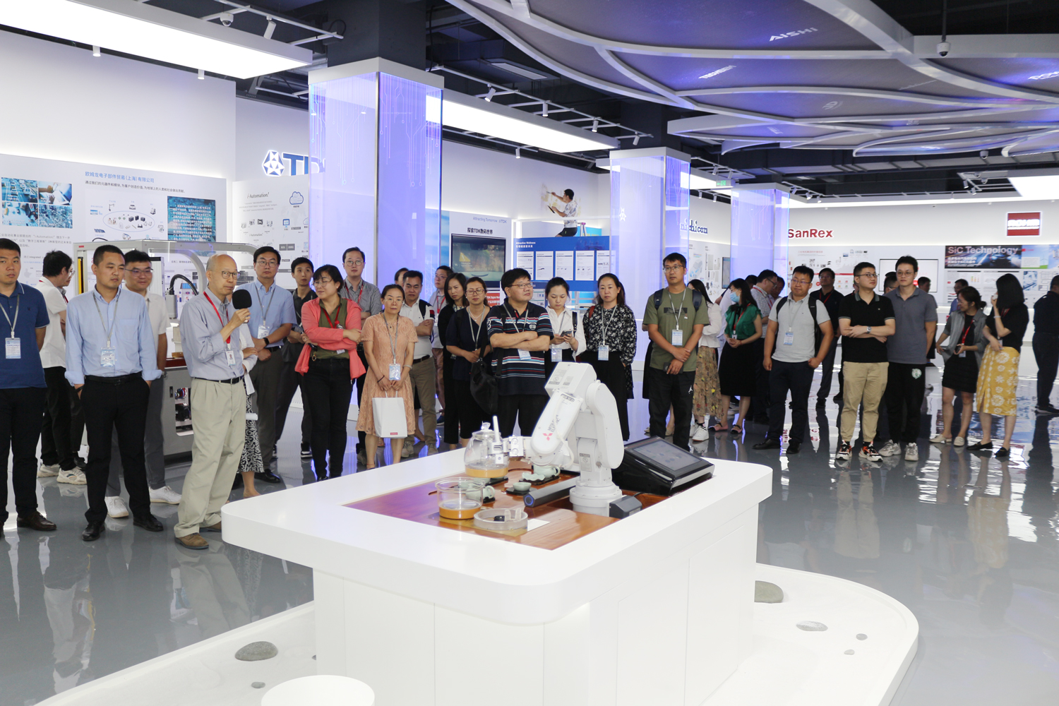 大家正觀賞三菱電機(jī)展臺的工業(yè)自動化機(jī)器人工作