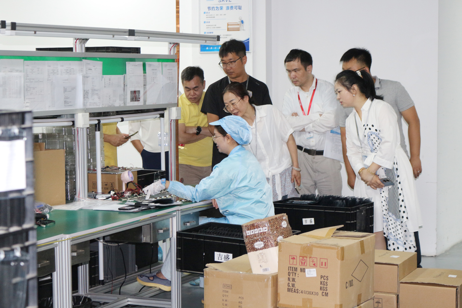 參觀自有品牌吉盛網(wǎng)絡(luò)的裝配流水線