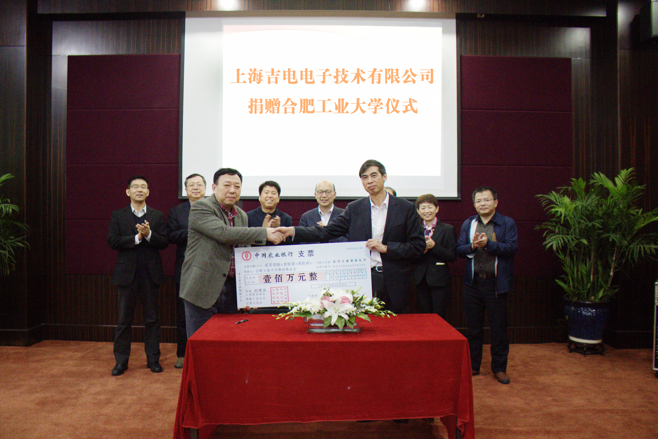 在捐贈(zèng)儀式上,雙方簽訂了關(guān)于“吉電獎(jiǎng)助學(xué)金”的捐贈(zèng)協(xié)議,延續(xù)了我司自2011年向合肥工業(yè)大學(xué)—吉電·富士獎(jiǎng)教獎(jiǎng)助學(xué)金的傳統(tǒng),每年出資20萬(wàn)連續(xù)5年共計(jì)100萬(wàn)用于獎(jiǎng)勵(lì)電氣與自動(dòng)化工程學(xué)院優(yōu)秀青年教師和優(yōu)秀本科生、研究生,以及資助品學(xué)兼優(yōu)的家庭困難學(xué)生。